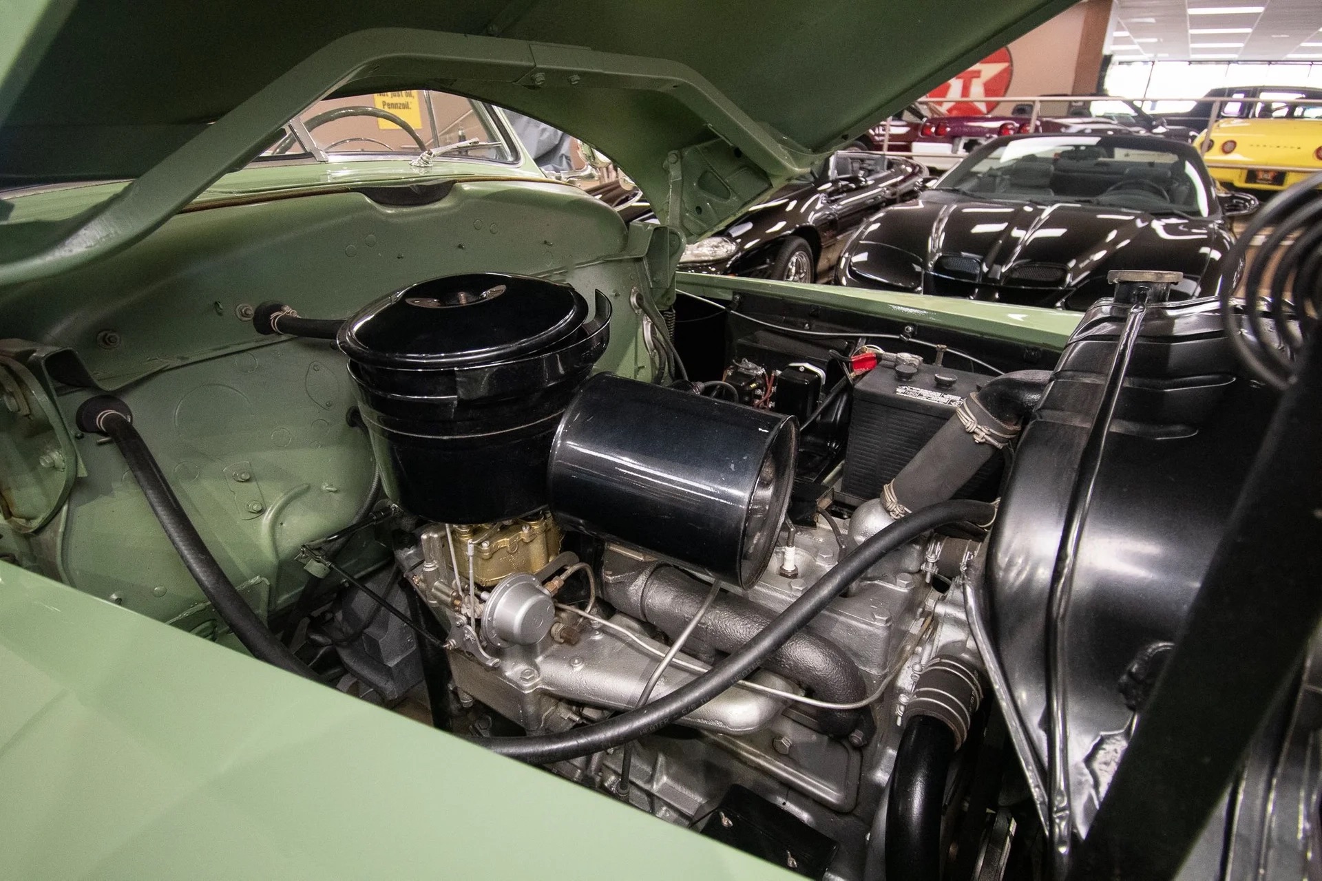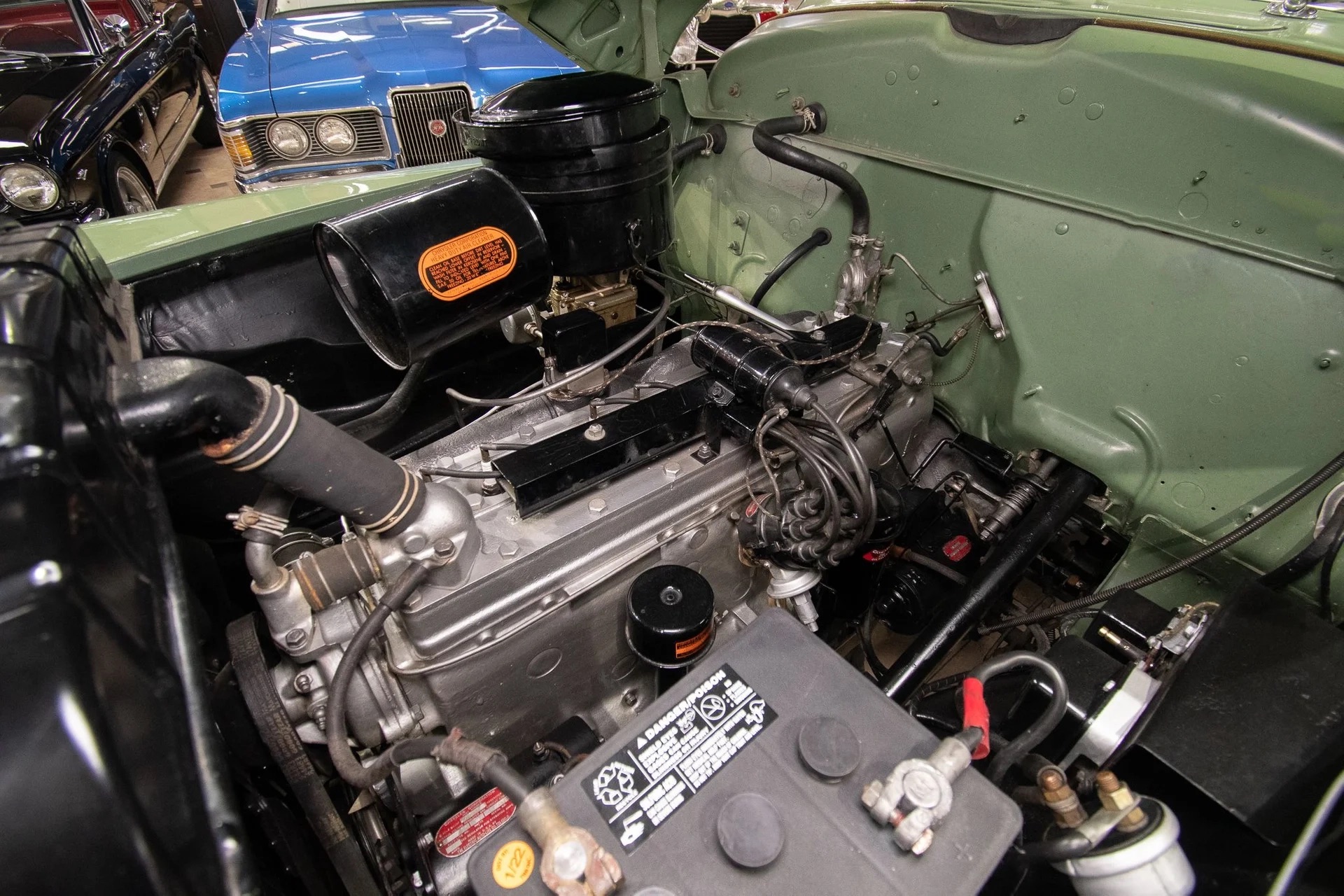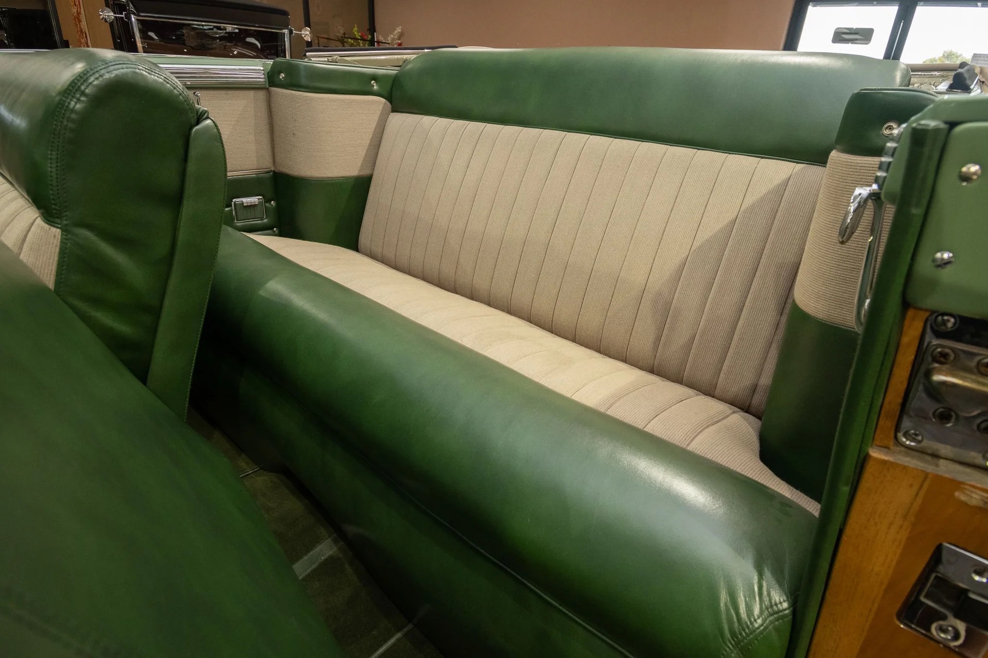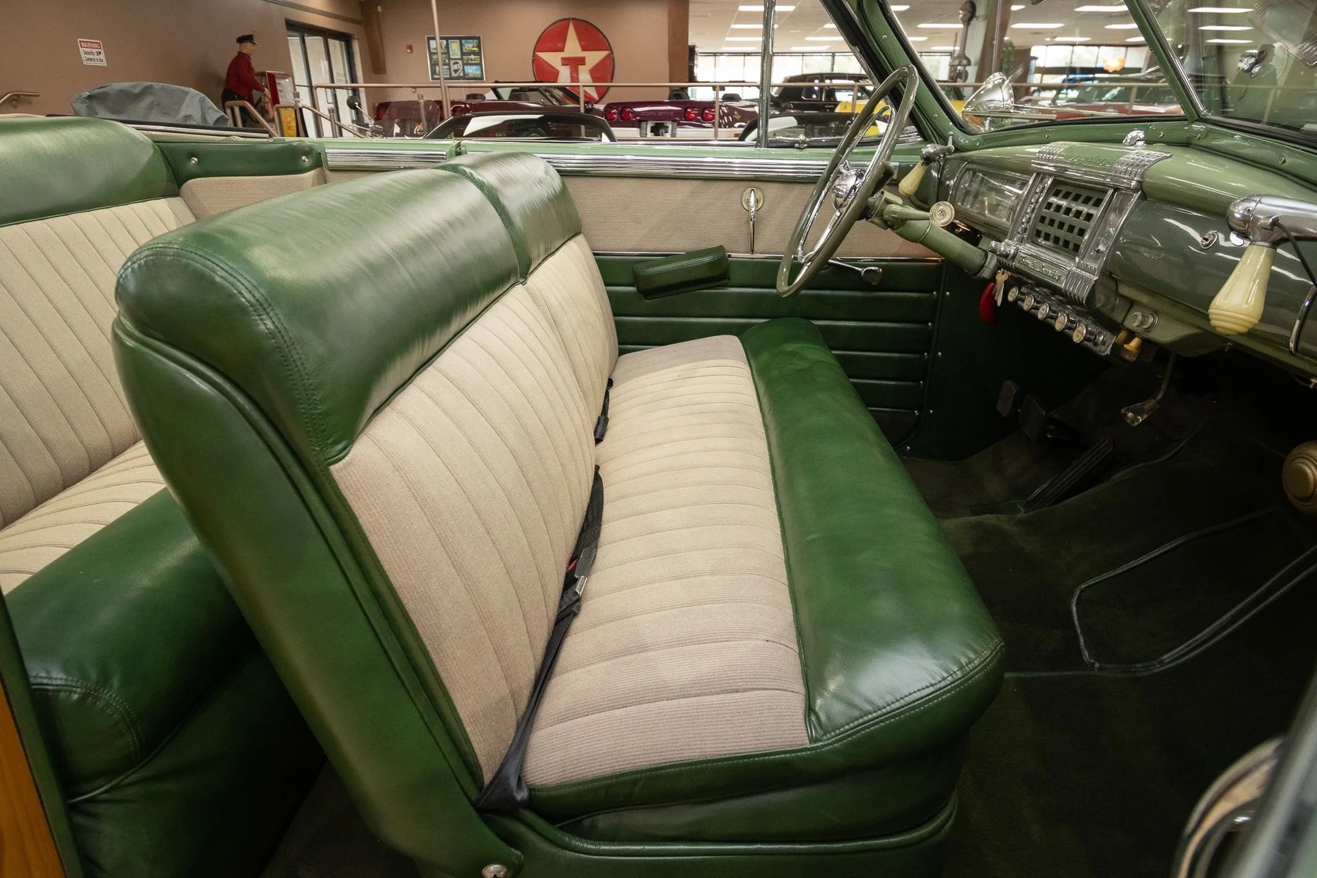 Classic beauty featuring a 323 C.I. 135hp Spitfire Straight-8 engine and 4-speed Fluid Drive transmission. Highlights include a beige power convertible top, custom wood and chrome work, dual Mopar spotlights, wide whitewall tires, and an AM radio. This timeless convertible also boasts push-button start and a carpeted trunk with spare tire. Contact us today to learn more!