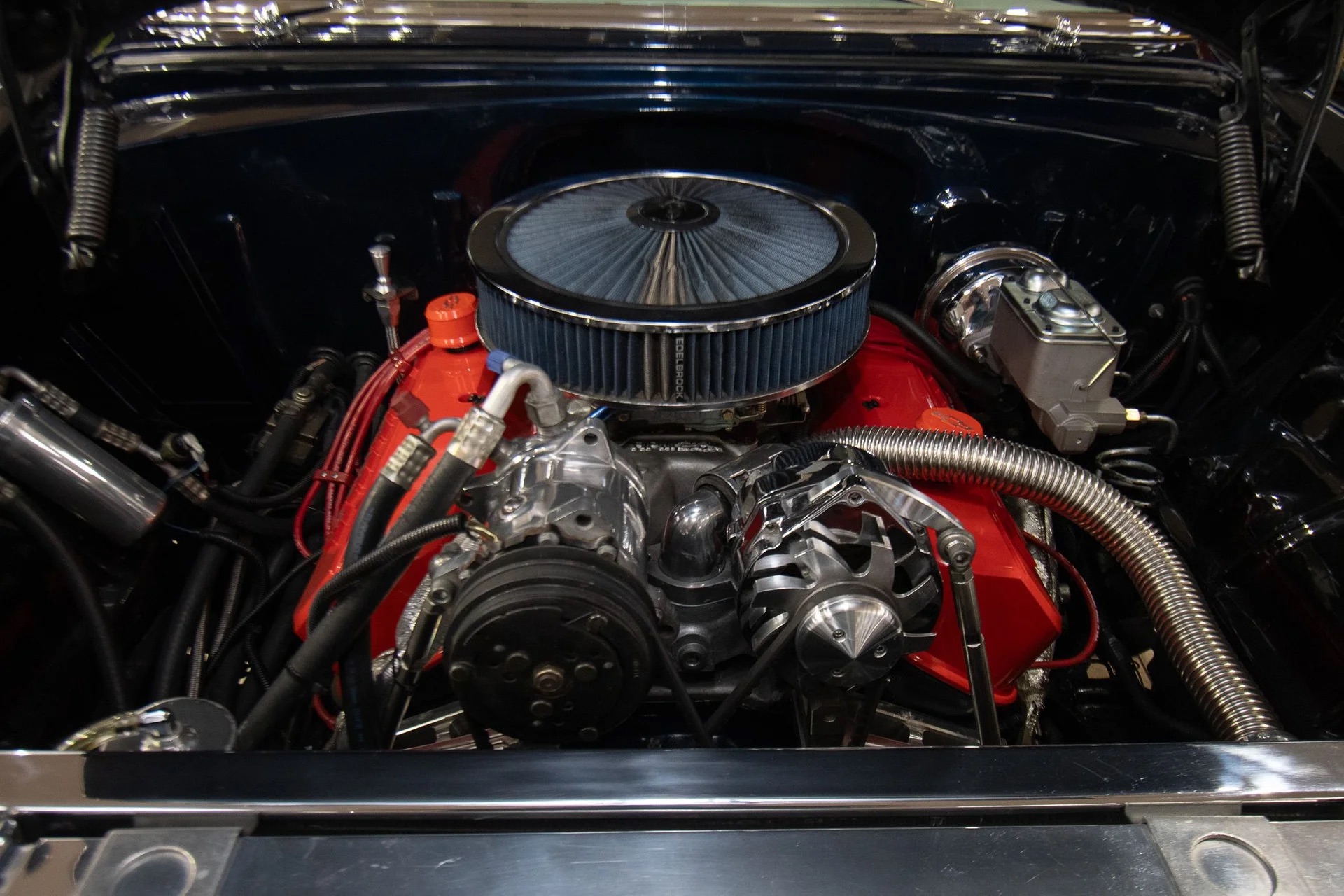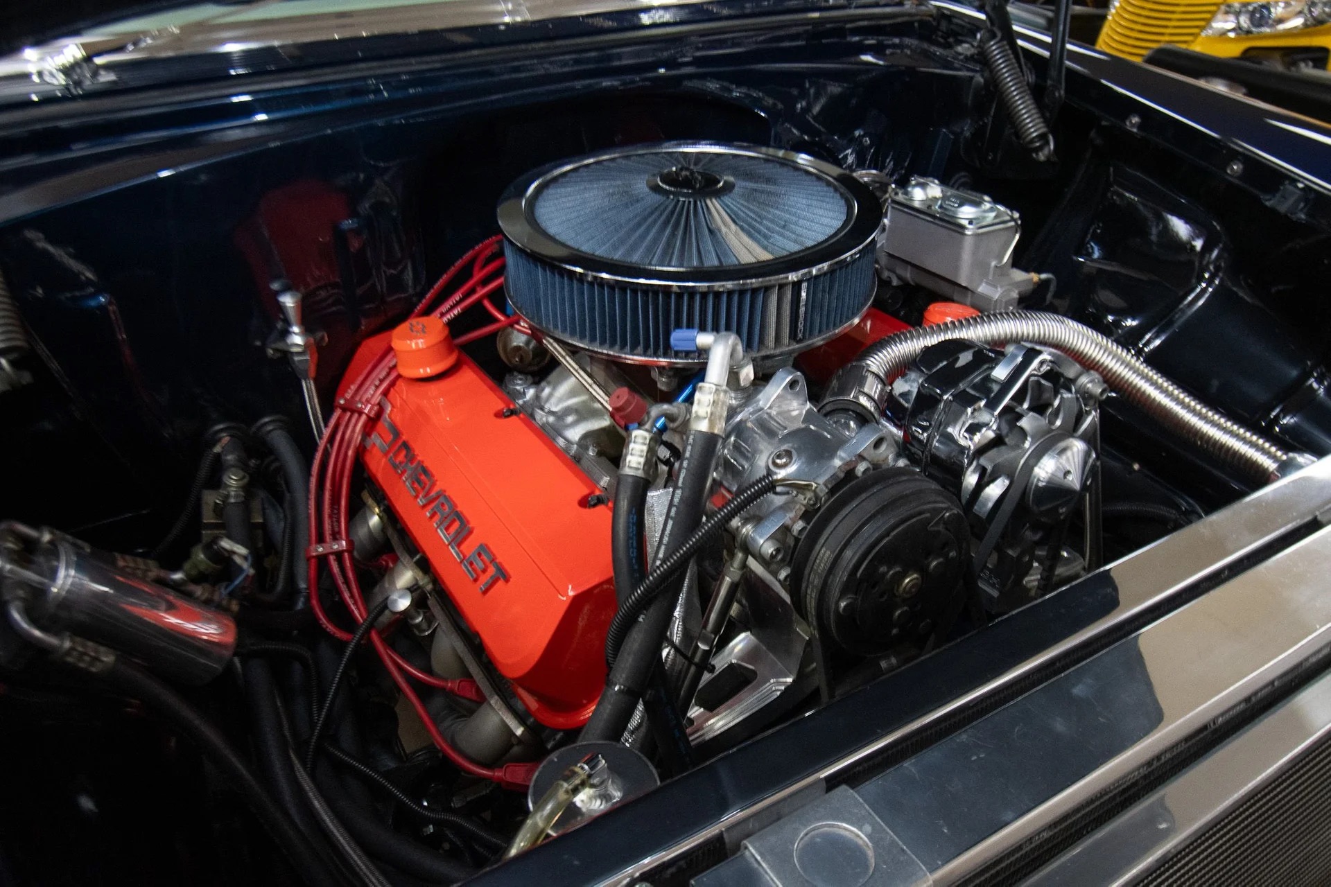 Offering a powerful custom muscle car featuring a 509 C.I. Merlin Big Block V8 crate engine rated at 540hp and 575 lb-ft of torque. It includes Edelbrock RPM intake, Holley carburetor, long tube headers, and custom chambered side exit exhaust. Equipped with a 700R4 automatic transmission, Ford 9" rear axle, modern A/C, power steering and brakes, front disc brakes, and 5-spoke aluminum wheels. The interior boasts a custom two-tone cloth and ultra leather design with classic instruments, Hurst shifter, and leather-wrapped polished steering wheel. Finished in Dark Blue Pearl with gleaming chrome and an exceptionally clean undercarriage. Contact us for details!
