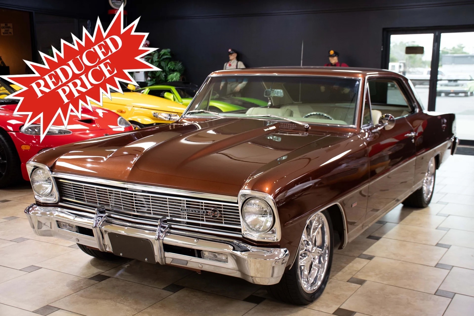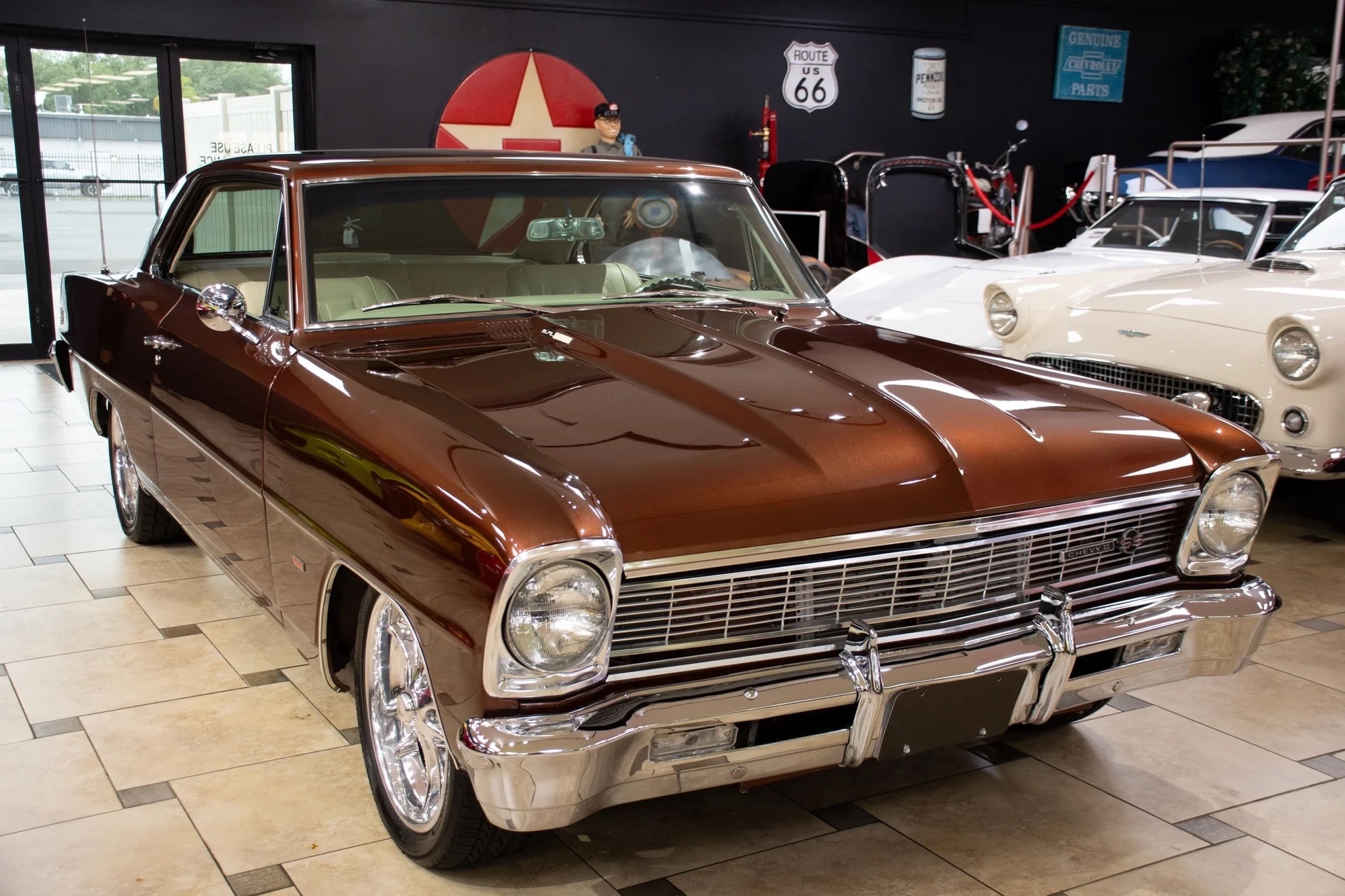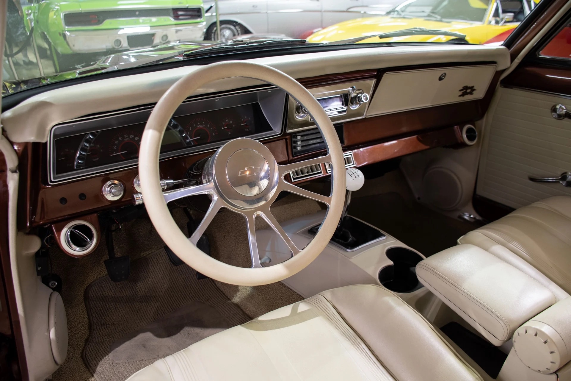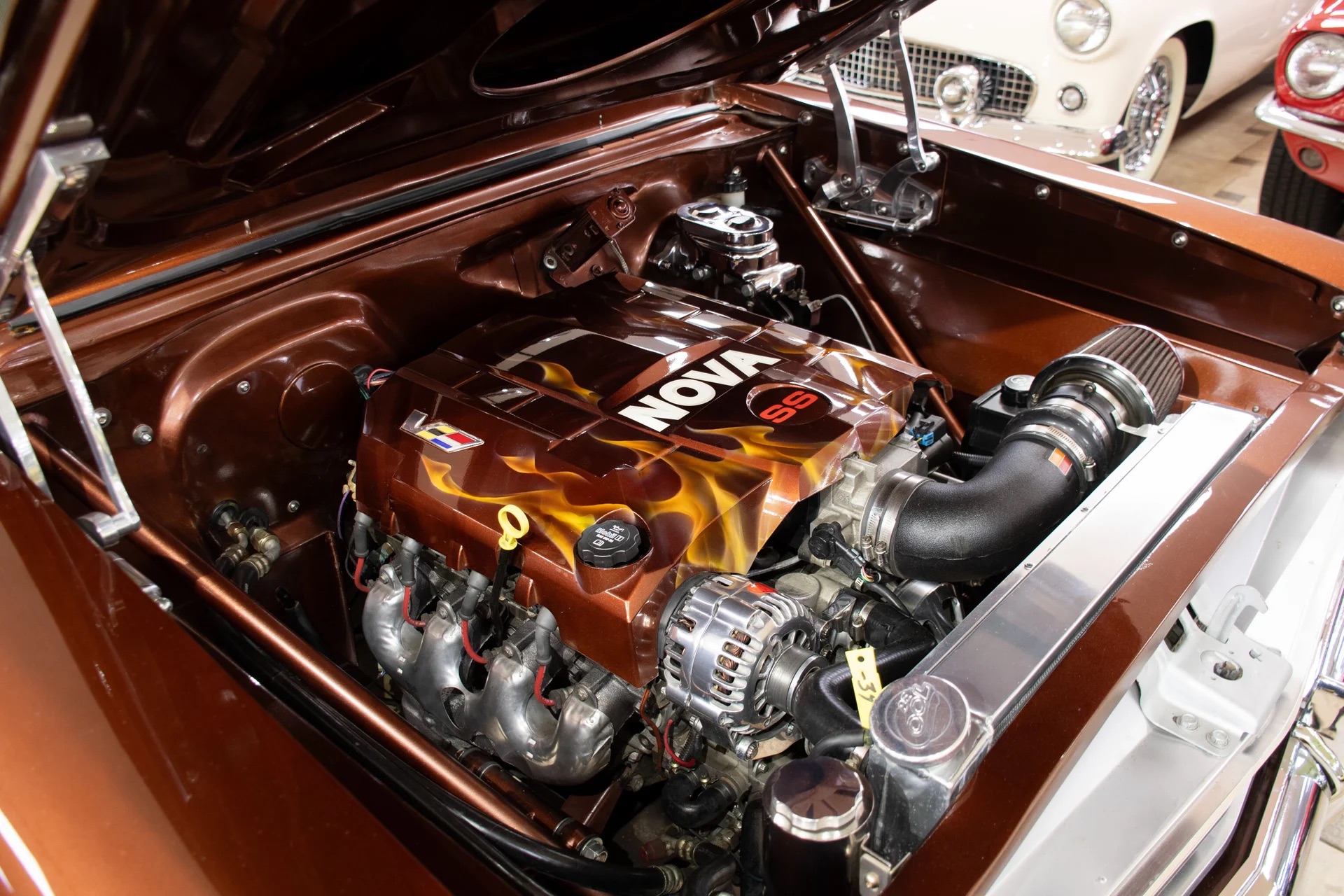 Offering a powerful 5.7L LS6 V8 with Tremec 6-speed manual transmission and Ford 9" rear axle. This custom build features adjustable coilovers, Wilwood disc brakes, BeCool aluminum radiator, air conditioning, and Hurst shifter. It shines with Billet Specialties Velocity wheels, Nitto tires, shimmering chrome, and a custom cream interior with billet steering wheel, center console, and gauges. Finished in stunning Root Beer Pearl. Contact us today!