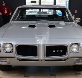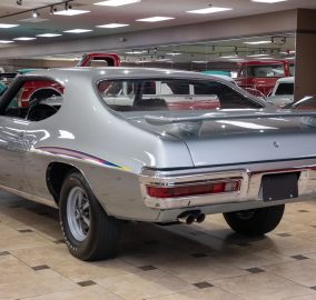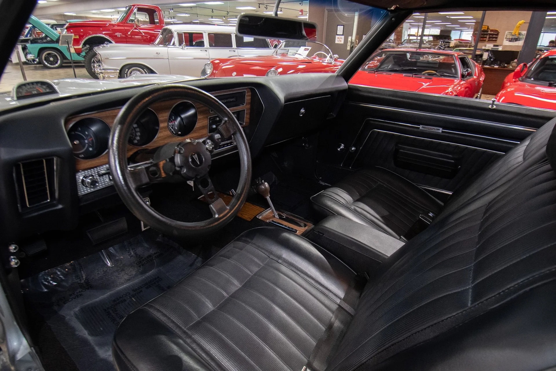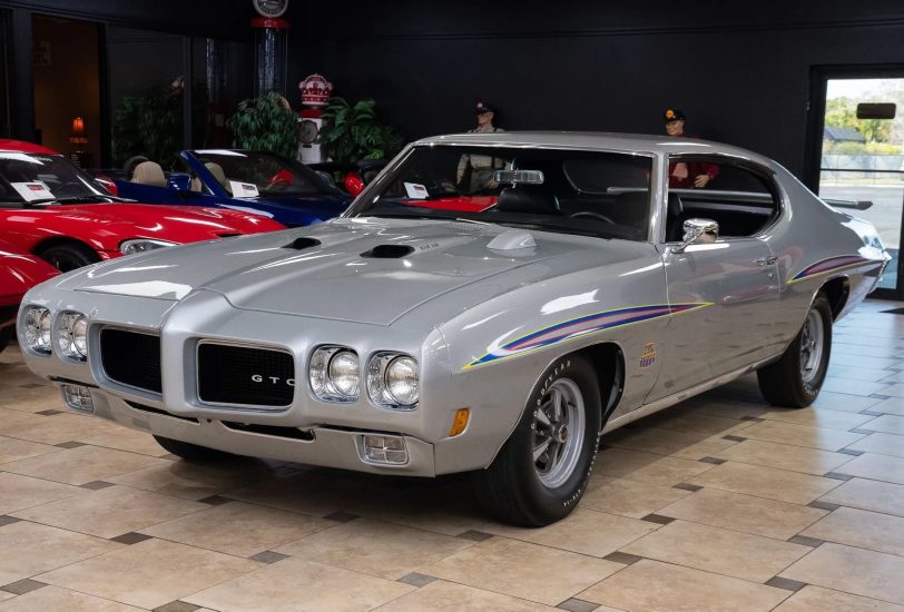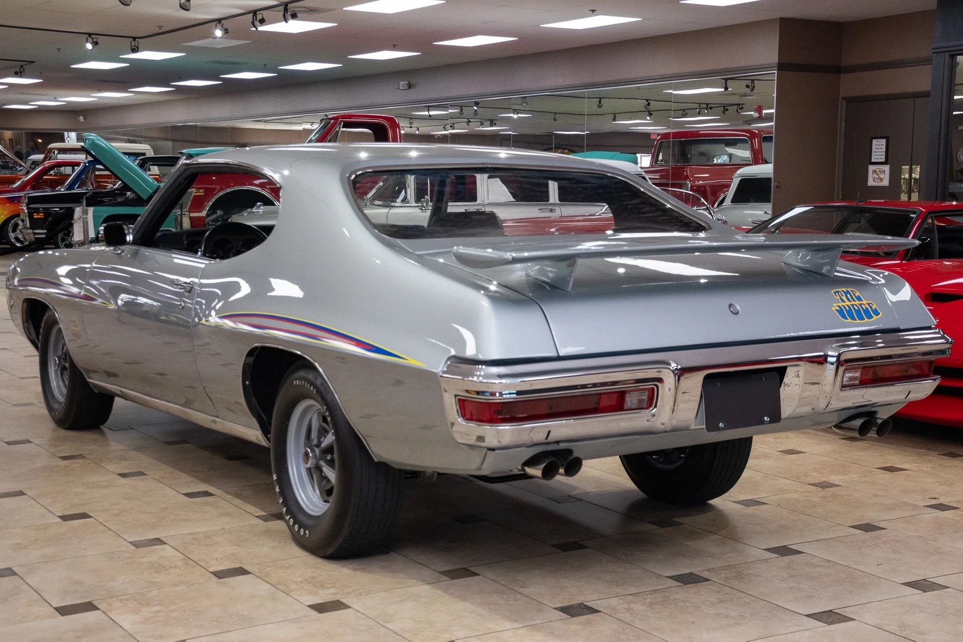 Offering a beautifully restored 'The Judge' featuring a 366hp 400 C.I. V8 with Ram Air III induction and Turbo-Hydramatic 400 transmission. It includes power steering and brakes, front disc brakes, hood tachometer, Formula steering wheel, PMD Rally II wheels with Goodyear Polyglas tires, rear spoiler, and black vinyl interior with bucket seats and center console. Finished in Palladium Silver with authentic multicolor graphics. Contact us today!